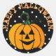 Happy Halloween Stickers Face Citrouille avec pois noir et blanc arrière - plan