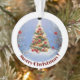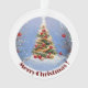 Un sapin de Noël enneigé et décoré.