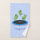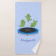 Ces 3 haricots verts sont en train de sauter sur un trampoline.