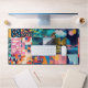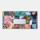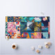 This image is a vibrant collage composed of colorful squares, each depicting a unique blend of abstract art, natural landscapes, and geometric or floral patterns. The color palette is rich and harmonious, dominated by deep blues, warm oranges, and soft greens. Some panels showcase stylized mountains, sunsets, and serene lakes, while others feature intricate traditional patterns and bold modern designs. Together, these elements create a visually striking mosaic that celebrates the beauty of nature and artistic expression.