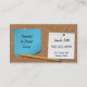 Ce carte de visite unique et professionnel de professeur approprié aux professeurs élémentaires, intermédiaires, et secondaires. Il comporte un post-it bleu et blanc ou des notes collantes et un morceau déchiré de papier de note coincé au panneau de liège avec des goupilles rondes de poussée et un crayon et aux trombones sur la surface d'écriture. Ce carte de visite est également parfait pour des commis de bureau, des réceptionnistes, des employés de bureau, des étudiants recherchant le travail d'été, des professionnels travaillant à un bureau, des auteurs, des professeurs, des ressources humaines, et n'importe qui qui recherche un carte de visite stationnaire unique et d'amusement de bureau. Conceptions de ©2012 Pam.