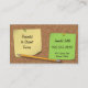 Ce carte de visite unique et professionnel de professeur approprié aux professeurs élémentaires, intermédiaires, et secondaires. Il comporte un post-it jaune et vert ou des notes collantes et un morceau déchiré de papier de note coincé au panneau de liège avec des goupilles rondes de poussée et un crayon et aux trombones sur la surface d'écriture. Ce carte de visite est également parfait pour des commis de bureau, des réceptionnistes, des employés de bureau, des étudiants recherchant le travail d'été, des professionnels travaillant à un bureau, des auteurs, des professeurs, des ressources humaines, et n'importe qui qui recherche un carte de visite stationnaire unique et d'amusement de bureau. Conceptions de ©2012 Pam.