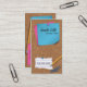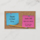 Ce carte de visite unique et professionnel de professeur approprié aux professeurs élémentaires, intermédiaires, et secondaires. Il comporte un post-it bleu et rose ou des notes collantes et un morceau déchiré de papier de note coincé au panneau de liège avec des goupilles rondes de poussée et un crayon et aux trombones sur la surface d'écriture. Ce carte de visite est également parfait pour des commis de bureau, des réceptionnistes, des employés de bureau, des étudiants recherchant le travail d'été, des professionnels travaillant à un bureau, des auteurs, des professeurs, des ressources humaines, et n'importe qui qui recherche un carte de visite stationnaire unique et d'amusement de bureau. Conceptions de ©2012 Pam.