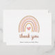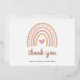 Carte de remerciements de Baby shower mignonne avec un arc-en-ciel boho dans des couleurs pastel muet avec un coeur rose au milieu. Ci-dessous est "merci" en feuille d'or rose avec les noms de Maman-to-Be et Baby. Le côté arrière a votre message personnalisé. Cette carte à plat personnalisée vous permet d'envoyer vos cartes de remerciements rapidement et facilement.