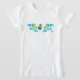 Caricature adorable d'une fille hula dansant entourée d'un lei floral.Ce dessin est également disponible dans une autre couleur. Cette caricature originale orne ces t-shirts gals sur le devant avec une reproduction d'accompagnement d'un amas de fleurs sur le dos. Ces dessins sont présentés dans plusieurs coloris.