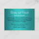 Hébergement Mariage turquoise - Cartes d'accueil - informez vos invités de toute information mariage spéciale et des chambres d'hôtel à proximité pour rendre leur voyage à votre grande journée simple. Le stock de carte est blanc ; cependant, vous pouvez changer le stock en crème, lin, métallique, coquille d'oeuf sous l'option 2). (sous la fonction personnalisée).