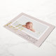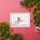 Une faire-part de naissance douce et élégante, neutre pour le genre, avec un fond de saignement intégral, une photo horizontale ou orientée paysage bordée de blanc, avec "bonjour" en bas à gauche en feuille d'or manuscrite. Le nom de votre bébé, les statistiques de naissance et un message personnel apparaissent en bas à droite. Ajoutez trois photos carrés supplémentaires à l'arrière.