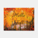 Ce tapis porte une magnifique scène d'automne sur une crique avec les mots HELLO FALL au milieu.