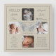 Créez un souvenir que vous pouvez chérir pour une vie avec ce design photo "Hello Little One" quatre avec le nom de votre bébé, les statistiques de naissance, les noms des parents et des frères et soeurs. Au centre, vous trouverez deux lignes modèles pour votre message personnel ou vous pouvez utiliser la nôtre. Ce message se trouve au-dessus et au-dessous des empreintes facultatives de votre enfant (ajoutez séparément gauche et droite). Toutes les couleurs de texte et d'arrière - plan peuvent être modifiées selon vos besoins. Montré ici en gris clair. Conception par Holiday Hearts Designs (droits réservés) avec des photos d'espace réservé modèle via Unsplash.