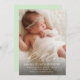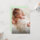 Partagez facilement vos nouvelles passionnantes avec vos proches en utilisant cette élégante faire-part de naissance. Sur le devant de ce faire-part de naissance photo se trouve le mot "bonjour" écrit en calligraphie blanche. Le script recouvre une grande photo de votre nouveau bébé. Sous la calligraphie, vous pouvez ajouter le nom de votre nouveau-né, les statistiques de naissance et vos noms. Si vous souhaitez ajouter des photos supplémentaires et/ou un message personnalisé plus long, le dos est entièrement modifiable. Vous pouvez même changer la couleur verte de l'arrière - plan sur le dos.
