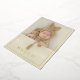 Carte faire-part de naissance moderne avec un design simple avec le mot "BONJOUR" et une bordure en feuille d'or réelle sur une photo de votre nouveau bébé. Le dos a un collage photo avec trois photos et votre message personnalisé ci-dessous en noir sur blanc. Cette faire-part de naissance élégante est très bien que vous annonciez un nouveau bébé garçon ou une petite fille.