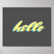 Bonjour typographie mot d'art poster a des lettres jaunes et bleues en gras sur arrière - plan gris fusain pour la décoration moderne tendance à la maison ou au bureau.