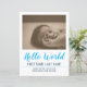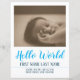 Hello World - faire-part de naissance avec photo Les noms, le texte, l'image et la date peuvent être customisés dans le modèle.