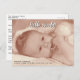 Partagez la merveilleuse nouvelle de la naissance de votre bébé avec cette carte postale faire-part avec votre adorable nouveau-né avant et centre ainsi qu'un salut "Hello World" enjoué et attrayant en haut que vous pouvez reformuler comme vous voulez ou supprimer entièrement. Personnalisez également avec la photo et le nom de votre bébé, les statistiques de naissance, le nom et l'adresse de l'expéditeur et le message aux destinataires comme indiqué ci-dessus. Ce modèle est très flexible et vous permet d'ajouter autant ou aussi peu d'informations que vous le souhaitez dans les formats que vous préférez. Notez également que le texte que vous entrez dans la plupart des zones des deux côtés peut être réparti sur plus d'une ligne en ajoutant simplement les retours chariot là où vous le jugez bon.