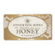 Une police "revival" française à l'ancienne avec un aspect gaufré donne à votre nom de chapiaire un look élégant sur ce étiquette de miel ovale ivoire avec bordure d'or. L'abeille héraldique au centre du étiquette est d'un armoiries d'un baron du XIIIe siècle. Les abeilles étaient les insectes les plus répandus représentés dans l'heraldique et sont des symboles de l'industrie et du travail acharné. Motif de nid d'abeille délicat à l'intérieur des transitions ovales du centre vers l'or métallique le long du bord arrière - plan.