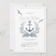 Élevez votre fête mariage avec ce captivant ancre et faire-part de mariage héraut, orné de gracieuses mouettes. Ce design élégant, aux couleurs classiques du bleu et du gris, avec des rayures nautiques sur le dos, évoque un charme maritime intemporel, parfait pour les nuptiaux balnéaires.