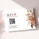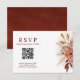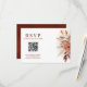 Simplifiez l'organisation de votre mariage avec notre carte de réponse de mariage florale avec code QR et herbe de Pampas Terra. Dotée d'un design élégant orné d'herbe de pampas et de fleurs terracotta, cette carte de réponse intègre une touche moderne avec un code QR qui dirige les invités vers votre site web de mariage pour des réponses faciles. Parfaite pour les couples contemporains qui cherchent un mélange de charme rustique et de commodité technologique, cette carte assure un processus de réponse fluide tout en maintenant la cohérence esthétique de votre thème de mariage.