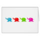 Belle illustration de quatre éléphants de la jungle de couleur différente qui défilent de suite. Image disponible sur divers cadeaux et produits.