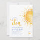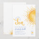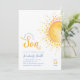 A sweet and joyful baby shower invitation designed around a Here Comes the Son sunshine theme.