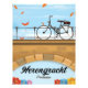 Herengracht Canal Amsterdam Affiche de voyage avec un vélo survolant un pont.