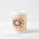 Cette énorme tasse présente un dessin mignon d'un petit hérisson brun épicé, enroulé dans une boule qui a l'air endormi. Le Hérisson est entouré de jolies fleurs. Le hérisson est marron avec un visage crème et les fleurs sont rouges, orange et roses.
