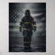 Capture the courage and dedication of real-life heroes with this stunning firefighter poster. The artwork features a firefighter walking through drifting smoke with a subtle black-and-white USA flag in the background, symbolizing bravery and patriotism. Perfect for home, office, fire stations, or as a heartfelt gift for fire families and supporters.