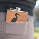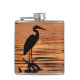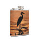 Ce flacon de beaux-arts présente un héron de grand bleu (herodias d'ardea) en silhouette, pêchant dans les eaux peu profondes du lac Cayuga dans Ithaca, NY qui est l'un des lacs finger de New York hors de la ville. Un beau coucher du soleil orange, jaune et d'or colore les vagues et les ondulations dans un motif abstrait.