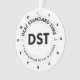 DST est au milieu d'un cercle blanc à contour noir. Sur l'anneau extérieur en noir surligné se trouve le texte en haut, "Heure normale Sourde", et en bas, "Il faut plus de temps pour dire au revoir". Les numéros 1-12 sont en noir gras sur les bords du design.