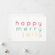 Envoyez un message de voeux de vacances, ou créez une invitation avec cette HAPPY MERRY JOLLY 5"x7" carte à plat. * Ajoutez facilement un message au dos avec Edit Design et Add Text. (Correspondez votre texte à la conception avant en utilisant la police 'Quicksand'.) * D'autres cartes et des produits correspondants sont disponibles dans la catégorie HAPPY MERRY JOLLY de ma boutique. ** Si vous souhaitez transférer cette conception à un autre type de produit, forme, ou taille, s'il vous plaît vérifier d'abord mon magasin pour voir si j'en ai déjà fait un, parce que je l'ai manipulé pour rendre le design juste adapté et il vous sauvera la tête. Parfois les dessins se transfèrent bien, parfois non. Juste pour. Si vous avez besoin d'aide ou si vous avez une question, envoyez-moi un message.