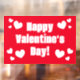 Heureuse Sainte-Valentin panneau de la fenêtre accrocher (pas un autocollant). Décor personnalisé pour votre entreprise. Vitre non adhésive statique Cling pour portes et fenêtres. Décorations personnalisées pour maison, boutique, musée, affaires, restaurant, bibliothèque, bar, café, café, pub, bureau, lieu de travail, école, magasin, entreprise et autres lieux. Décor cool à voir pour les clients, les clients, les visiteurs, les invités, etc. Visage vers l'extérieur ou vers l'intérieur, imprimé sur un côté. Ajoutez votre propre texte. Peut être opaque / transparent.