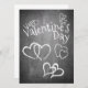 Valentines en style tableau noir avec coeur et salutations calcaires manuscrites à l'avant de la carte. Les autres espaces sont librement accessibles.