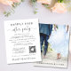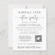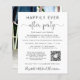 Un hébergement économique ou un faire-part mariage privé, une réception de mariage ou une invitation à célébrer une fête. Le devant présente "Happily Ever After Party" dans une simple typographie et un élégant script avec des swashes, votre faire-part de mariage et l'invitation à la réception, un code QR lié à votre site mariage pour que vos invités à scanner pour plus d'informations et à RSVP en ligne, et vos noms dans un script signature. Entrez facilement l'adresse URL de votre site Web mariage pour créer automatiquement le code QR et ajouter vos initiales en haut (le modèle des initiales est dimensionné de manière appropriée pour garder le code QR numérisable ; vous devez vérifier en analysant votre personnalisation avec votre téléphone avant de commander). Au verso, vous trouverez votre photo de mariage préférée, vos prénoms et votre date de mariage.