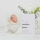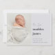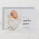 La carte de faire-part de naissance minimale moderne en neutrales cool comporte une photo verticale ou orientée portrait alignée à droite avec "Hi, I'm [Name]" à côté. Personnalisez avec la date de naissance du bébé, les statistiques et une signature de famille, et ajoutez trois photos carrés supplémentaires au dos.