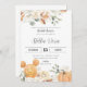 Cette invitation à la douche nuptiale présente des fleurs de chute d'aquarelle peintes à la main dans de belles tonnes muettes. Les pops de couleur orange se retrouvent dans les petits citrouilles nichés au fond de l'invitation.