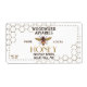 Ce étiquette de 3,75 po x 2 po (étiquette d'expédition) est une taille idéale pour un pot de miel de 12 onces de taille ronde ou hexagonale et a l'air superbe avec un couvercle en or. Le centre du étiquette est mis en forme pour s'adapter à la partie avant du étiquette hexagone ; le nid d'abeille apparaît sur les côtés droit et gauche avec le poids net sur la partie inférieure gauche du étiquette.