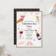 A trendy Galentine's Day invitation with gold frame border featuring the phrase "hey babe!" alongside illustrated cocktail glasses, champagne bottle, hearts, and ribbons. Perfect for a fun and stylish celebration with your besties. The playful yet sophisticated design includes plenty of space to customize with your party information for an unforgettable Galentine gathering.