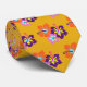 Petite cravate à motifs floraux, couleur or, avec imprimé de fleurs d'hibiscus tropicaux. Les amas de fleurs violettes et oranges font un bel accessoire pour n'importe quel été, ou plage, mariage.