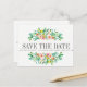 Conçu pour se coordonner avec notre collection de mariage floral aquarelle Tropical Hibiscus, entouré de délicates fleurs d'été peintes et de feuilles tropicales sur fond blanc, ce design est accrocheur et très beau. Moderne et simple, la carte de pré-annonce de mariage apparaît au centre parmi le feuillage et un modèle de carte postale est au verso. Tous les styles de texte, couleurs et tailles peuvent également être modifiés pour répondre à vos besoins
