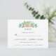Conçu pour aller avec notre collection de mariage Tropical Hibiscus et ses accessoires, cet élégant faire-part de réponse de mariage botanique présente une superbe couronne de fleurs et de feuilles tropicales.