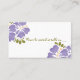 Joli lavande violet hibiscus mariage table placent des cartes avec des feuilles de fougères vertes. Parfait pour une plage tropicale ou un mariage à thème luau hawaïen, une fête de fiançailles ou un dîner d'anniversaire. Personnalisez le dos de la carte avec le nom de la mariée et du marié et un message spécial. Oeuvre © Chrissy H. Studios, LLC. Tous droits réservés.