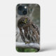 Northern Pygmy Owl iPhone 13 Mini Coque. Un petit hibou pygmée du Nord perché sur un membre d'arbre. Photo de Dominik Van Opdenbosch.