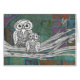 Médias mélangés utilisant le collage et les techniques de dessin. Tiré par la main original, conception de hibou a balayé dessus à l'arrière - plan différent pour faire un morceau véritablement unique. Une grande carte pour des amants de hibou.