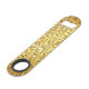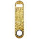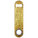 Un ouvre-bouteille jaune avec d'anciens hiéroglyphes gravés sur pierre.