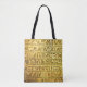 Un cool égyptien ancien Hiéroglyphes Sac fourre-tout jaune avec des hiéroglyphes jaunes anciens gravés sur pierre. Également disponible en violet, bleu, rouge et vert.