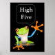 High Five Humorisore Poster avec une mignonne grenouille orange, bleue et verte. Remettez ceci à votre maison ou à votre lieu de travail et voyez combien de personnes ont effectivement élevé cinq votre grenouille. Idéal pour les bardes, les restaurants ou les lieux publics.