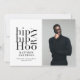Hip hip hooray photo moderne typographie graduation faire-part. Doté d'une typographie audacieuse et d'un arrière - plan à rayures tendance, la couleur peut être modifiée.