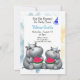 Une adorable invitation à la fête d'anniversaire à thème hippo ! Le design présente des hippopotames gris fantaisie assis avec leurs casquettes d'anniversaire, grignotant joyeusement sur des tranches de pastèque, apportant une ambiance ludique et joyeuse à la fête. Les détails de l'anniversaire sont encadrés dans une douce bordure en aquarelle dans les tons pastel, ajoutant une touche douce et artistique qui apportera un sourire aux visages lorsqu'ils reçoivent cette invitation de fête. Customisez comme vous voulez.