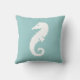 élément de décoration sur le thème de l'océan HIPPOCAMPE BLANC sur un coussin bleu