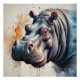Un Hippopotame à l'aquarelle détaillée aux yeux expressifs est représenté contre un arrière - plan doux et flou. Les couleurs naturelles rehaussent l'aspect vivant.