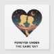 Conception de cœur cosmique romantique mettant en vedette deux amants sous les étoiles avec lune croissante et renard du désert. Parfait pour les anniversaires, la Saint-Valentin et les cadeaux romantiques.